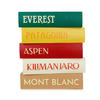 - DESIGN ORIGINAL. Cette petite table/tabouret a la forme d’une pile de livres colorés sur la thématique des destinations de haute montagne : Everest, Aspen, Mont Blanc, Patagonie et Kilimandjaro.