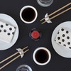 Balvi Sushi set Mushiki Color blanco Recipiente para Soya con Soporte de Palillos en Forma de Vaporera Japonesa Porcelana